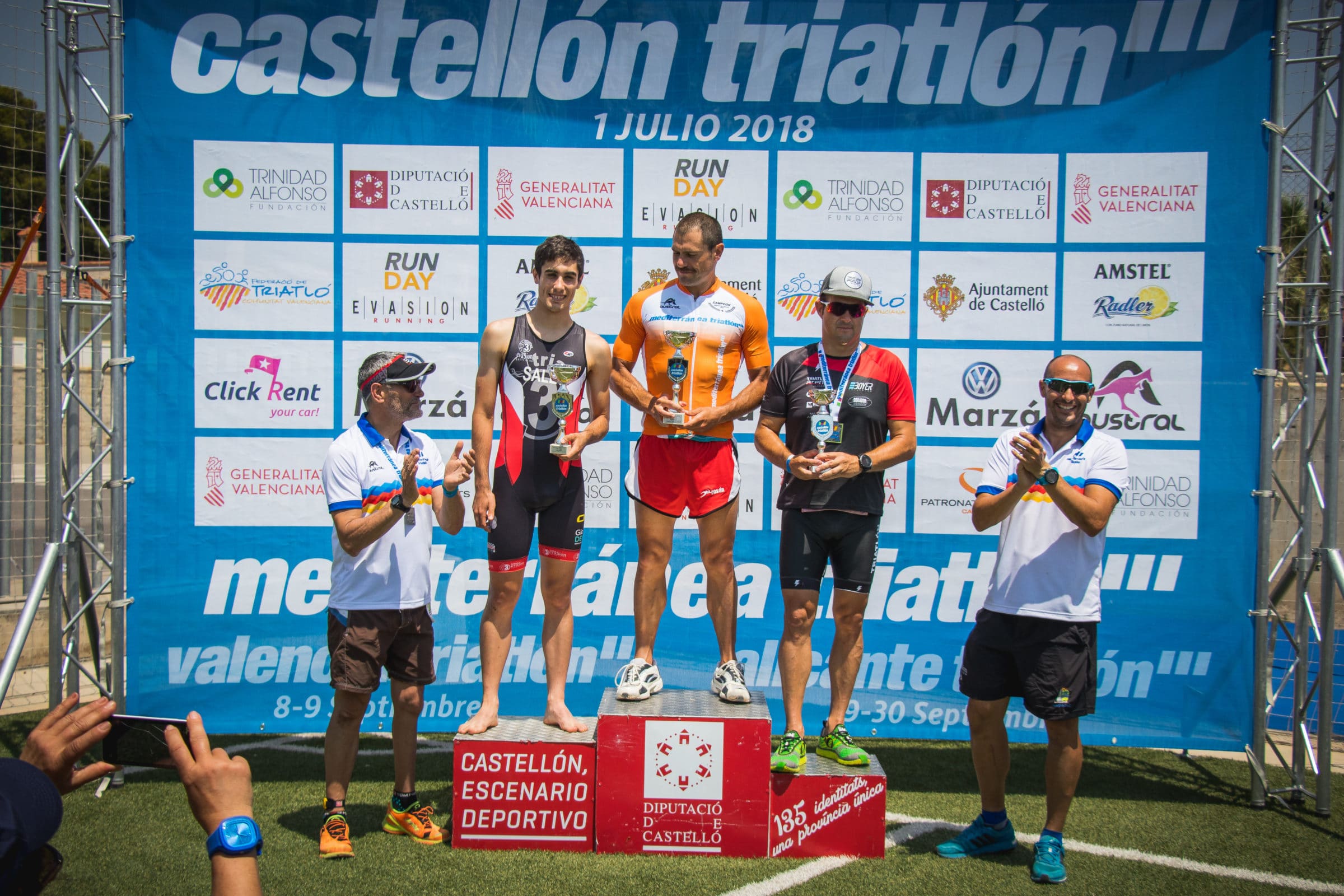 A las 9:45 horas los más de 200 inscritos se lanzaron al agua para disfrutar de la modalidad sprint en el Castellón Triatlón. El primero en completar los 750 metros a nado, los 20 kilómetros de ciclismo y los 5 kilómetros corriendo fue Jorge Serra, del CT laboratorio SYS (59:48). El podio lo completaron Pedro Fernández (01:00:04) y Miguel Soria (01:04:03).