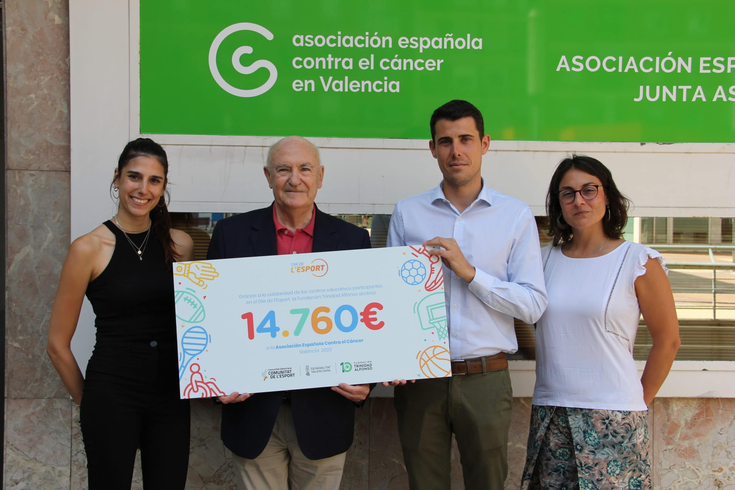 La Fundación Trinidad Alfonso hizo ayer entrega del cheque solidario del Dia de l’Esport a la Asociación Española Contra el Cáncer de Valencia.