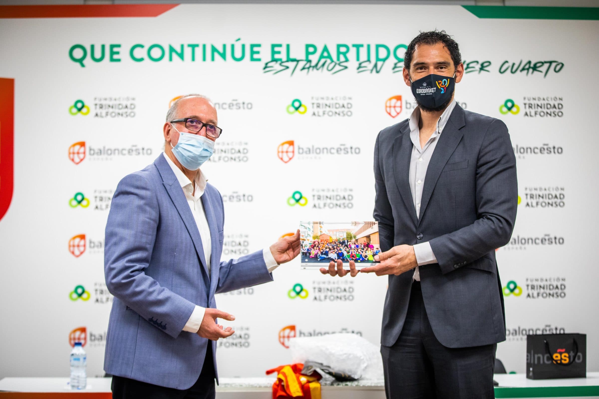 Juan Miguel Gómez, director de la Fundación Trinidad Alfonso, ha destacado que: «Nos invitáis a formar parte de un club muy selecto, y quiero destacar que esto no es un acuerdo económico, sino un reconocimiento de pasado, presente y futuro. Hemos puesto en marcha muchos proyectos juntos porque compartimos una misma visión de trabajar. Está próximo el Eurobasket, que queremos que tenga el máximo público posible que permita la situación epidemiológica, porque es importante que el público nos acompañe y arrope. El lema con el que se firma este convenio, ‘Que continúe el partido. Estamos en el primer cuarto’, no puede ser más acertado».